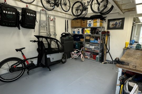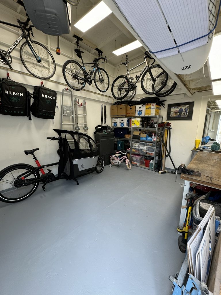 De vloer is in 2024 opnieuw gecoat, wat zorgt voor een nette, duurzame en onderhoudsvriendelijke afwerking.