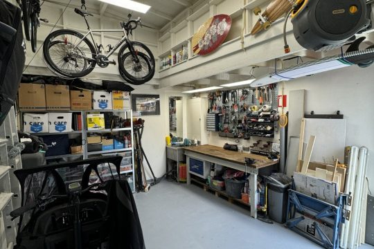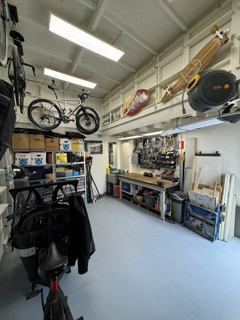 In 2020 is de garage van binnen volledig vernieuwd, inclusief nieuwe elektra, waterleidingen, LED-verlichting en een praktische RVS spoelbak met warm water via een doorstroomverwarmer. Daarnaast is er een eigen 3-fase krachtstroomaansluiting aanwezig, wat deze ruimte uitermate geschikt maakt voor werkplaatsgebruik.