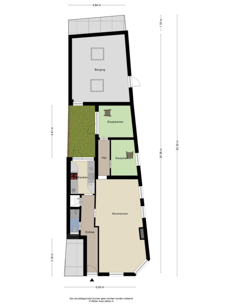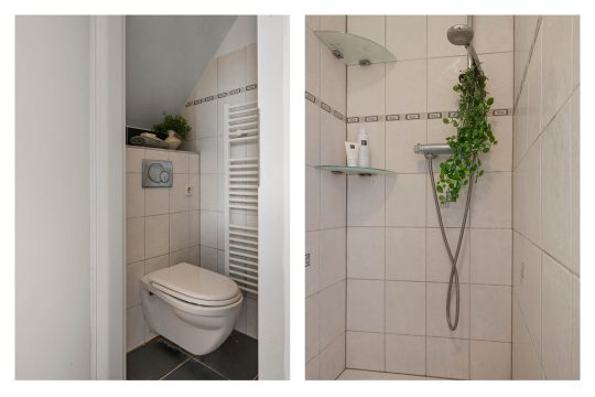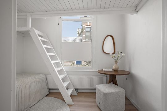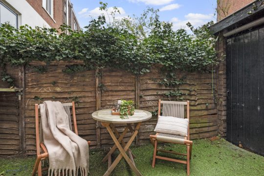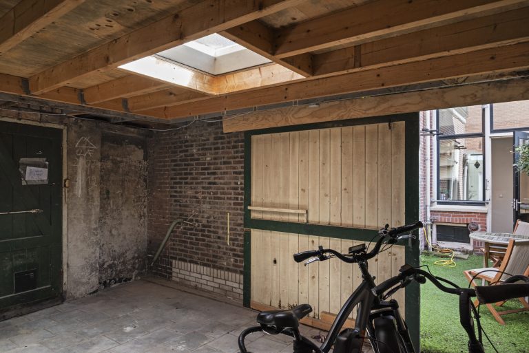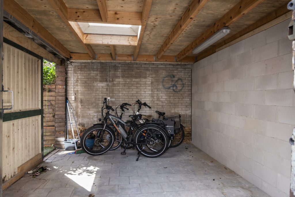 Achterin vind je twee slaapkamers, waarvan één direct toegang biedt tot de patiotuin. Deze tuin ligt op het westen, waardoor je hier in de middag en avond heerlijk van de zon geniet. Het is zo’n plek waar je na je werk nog even buiten zit terwijl de dag langzaam overgaat in de avond. Achterin de tuin bevindt zich een schuifdeur die toegang geeft tot een zeer ruime berging. Via deze schuur heb je een praktische ontsluiting naar de Schermerstraat, ideaal voor bijvoorbeeld de fietsen.