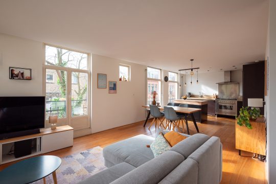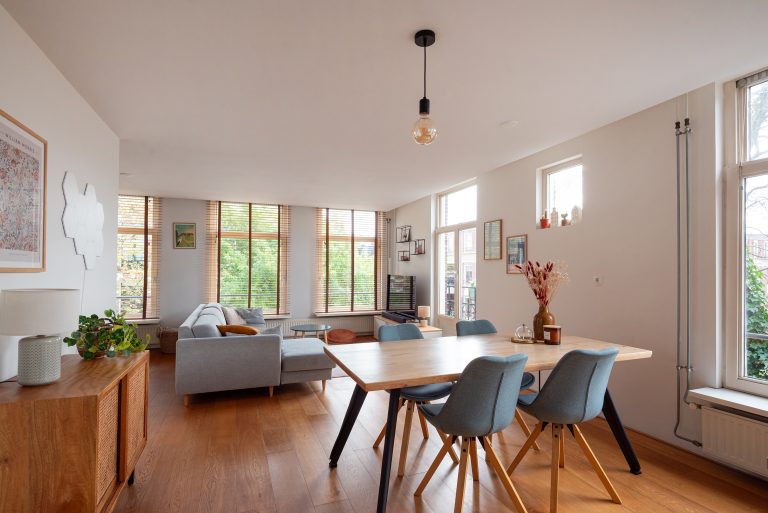 Wonen aan de Fannius Scholtenstraat 10 c is wonen op een plek waar de stad even op adem komt. Tussen de oude bakstenen gevels, met het Westerpark als buurman, ligt dit lichte appartement dat voelt als een rustige schuilplek midden in het Amsterdamse stadsleven. Zodra je de straat inloopt, merk je het: hier heerst een ontspannen sfeer. De bomen ritselen, de vogels hoor je nog, en toch ligt de bruisende energie van het Westergasterrein om de hoek.