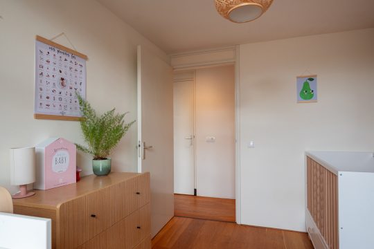 ’s Ochtends open je de deuren van de slaapkamer en laat je de frisse lucht binnen. De tweede kamer heeft diezelfde rustige energie en is ruim genoeg voor logees, een kinderkamer of een werkplek. Alles voelt verzorgd en logisch ingedeeld — van de badkamer met zijn natuurlijke ventilatie tot de handige berging met ruimte voor de was.
