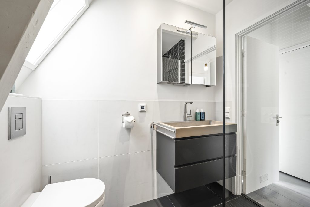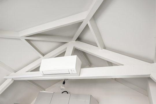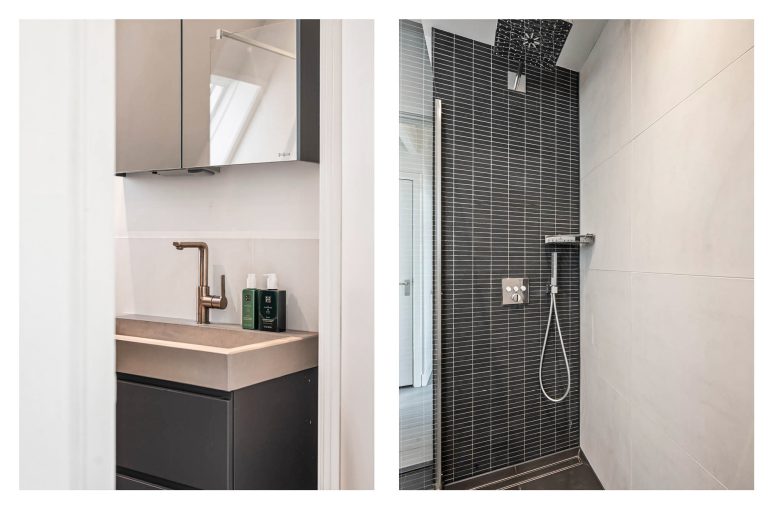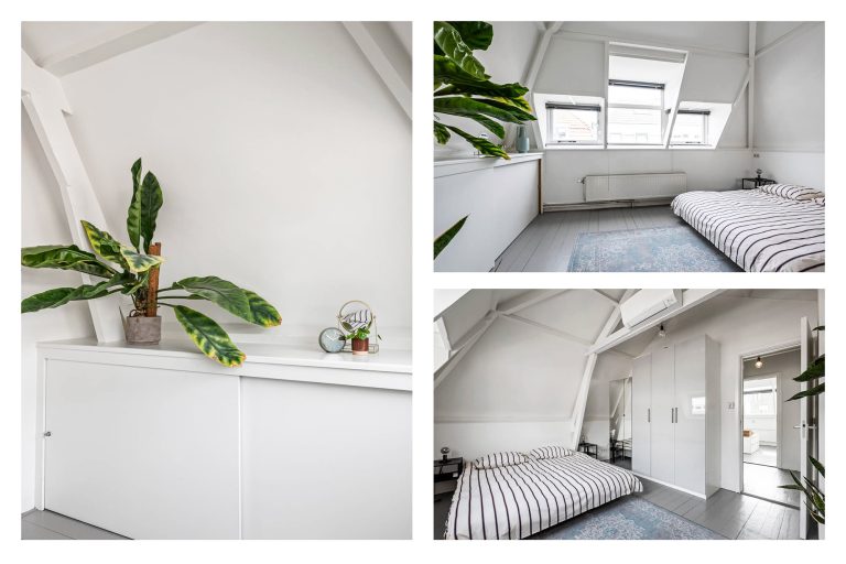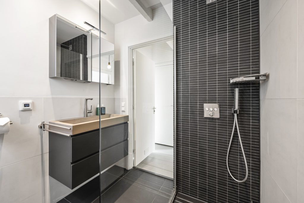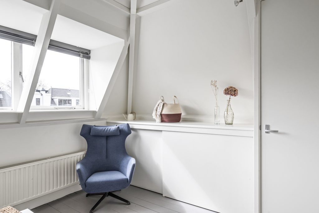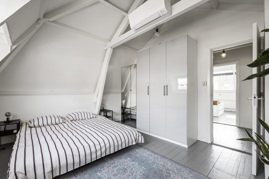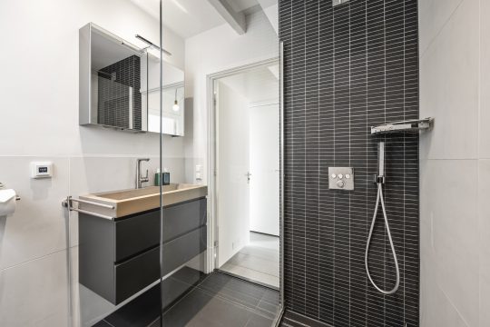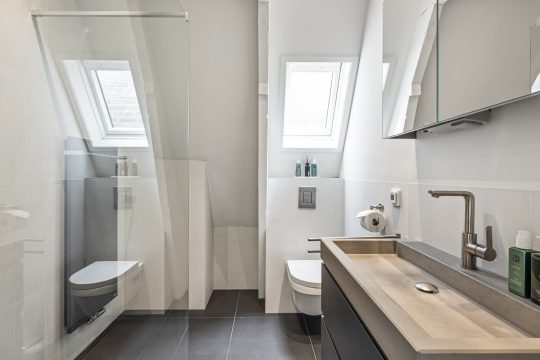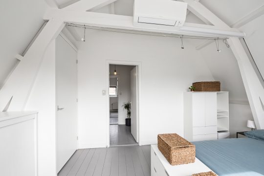 Op de tweede verdieping wordt het gevoel van ruimte en comfort moeiteloos doorgetrokken. Twee bijzonder ruime slaapkamers, met maatwerk kasten en fraaie zichtbare balken, zorgen voor karakter en een warme sfeer. Beide kamers zijn voorzien van airconditioning, wat het wooncomfort ook tijdens warme zomerdagen garandeert. De moderne badkamer is stijlvol uitgevoerd en beschikt over een inloopdouche, wastafel en een tweede toilet. Op de overloop is de wasmachine netjes weggewerkt in een vaste kast.