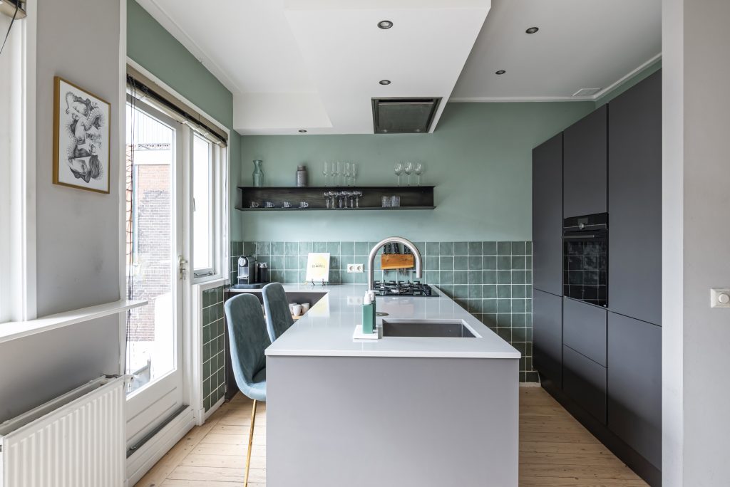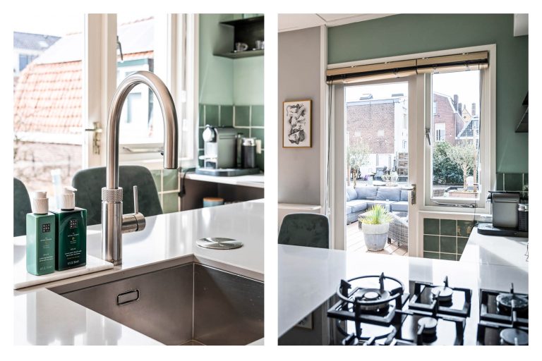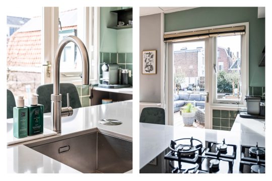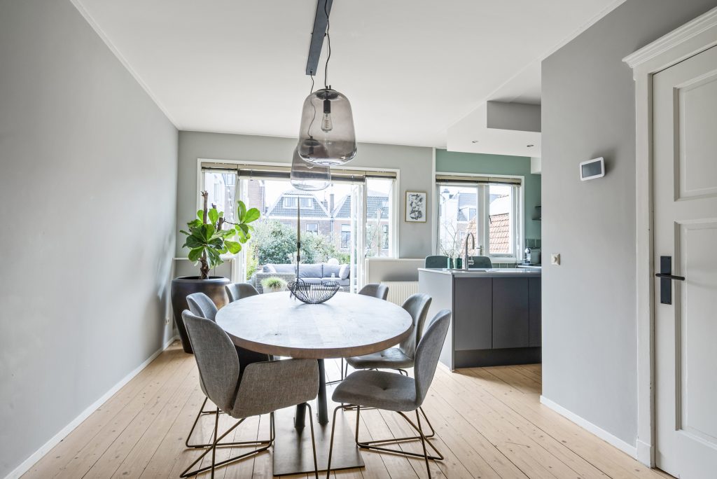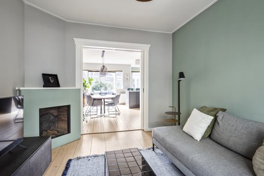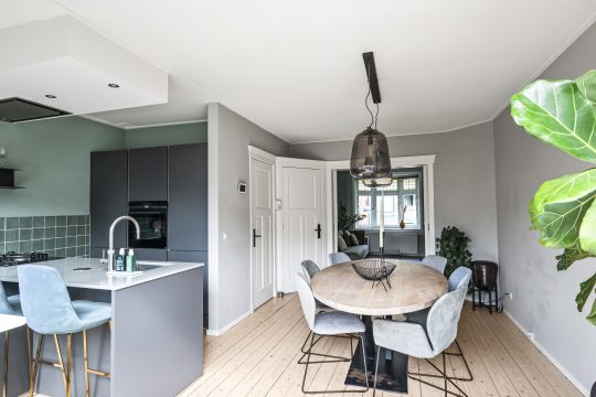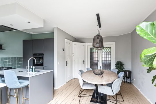 De eerste verdieping vormt het hart van de woning en is een droom van een leefruimte. De lichte woonkamer met erker en gashaard bevindt zich aan de voorzijde. De originele suitedeuren creëren een prachtig zicht naar de eetkamer en geven de verdieping een speelse, klassieke indeling. De open keuken sluit hier naadloos op aan en is een echte eyecatcher. Met een kookeiland, een Quooker en alle denkbare inbouwapparatuur is dit dé plek waar koken, samen zijn en genieten moeiteloos samenkomen.