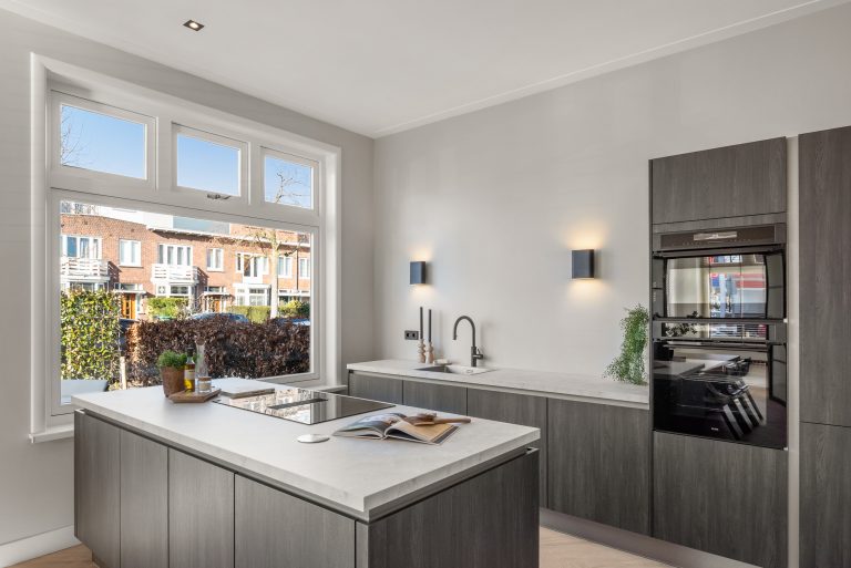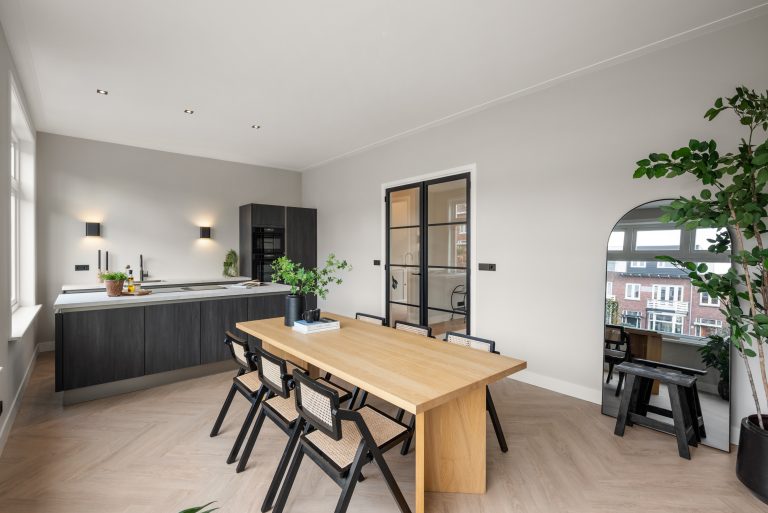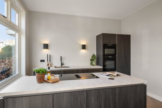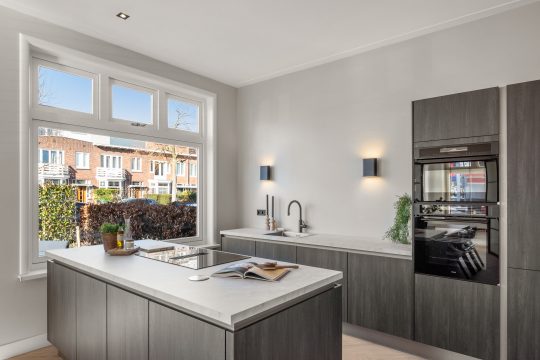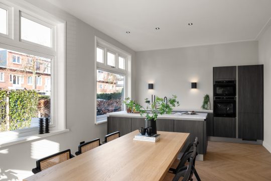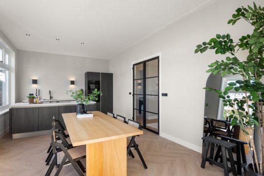 De keuken vormt het hart van de woning en is ontworpen voor wie van koken en samenzijn houdt. Het kookeiland is voorzien van een inductiekookplaat met geïntegreerde afzuiging. Daarnaast beschikt de keuken over een combimagnetron, een separate oven, een Quooker met combinatieboiler voor direct warm en kokend water, een vaatwasser en een koel-vriescombinatie. In de eetkamer is volop ruimte voor een grote tafel waar familie en vrienden samenkomen.