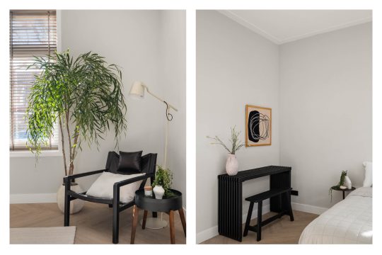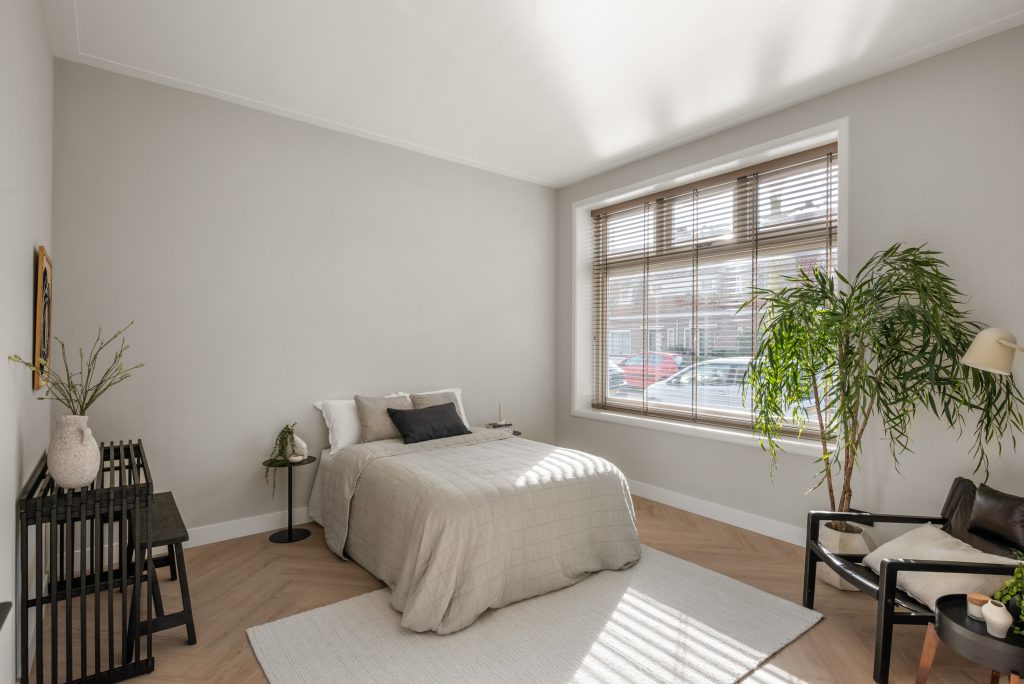 De woning beschikt over drie slaapkamers, elk met een eigen karakter. Eén kamer is ideaal als logeer- of werkkamer en heeft openslaande deuren naar de binnentuin. De tweede slaapkamer is zeer ruim en licht. De master bedroom is echt riant en biedt volop ruimte voor een groot bed en kasten.