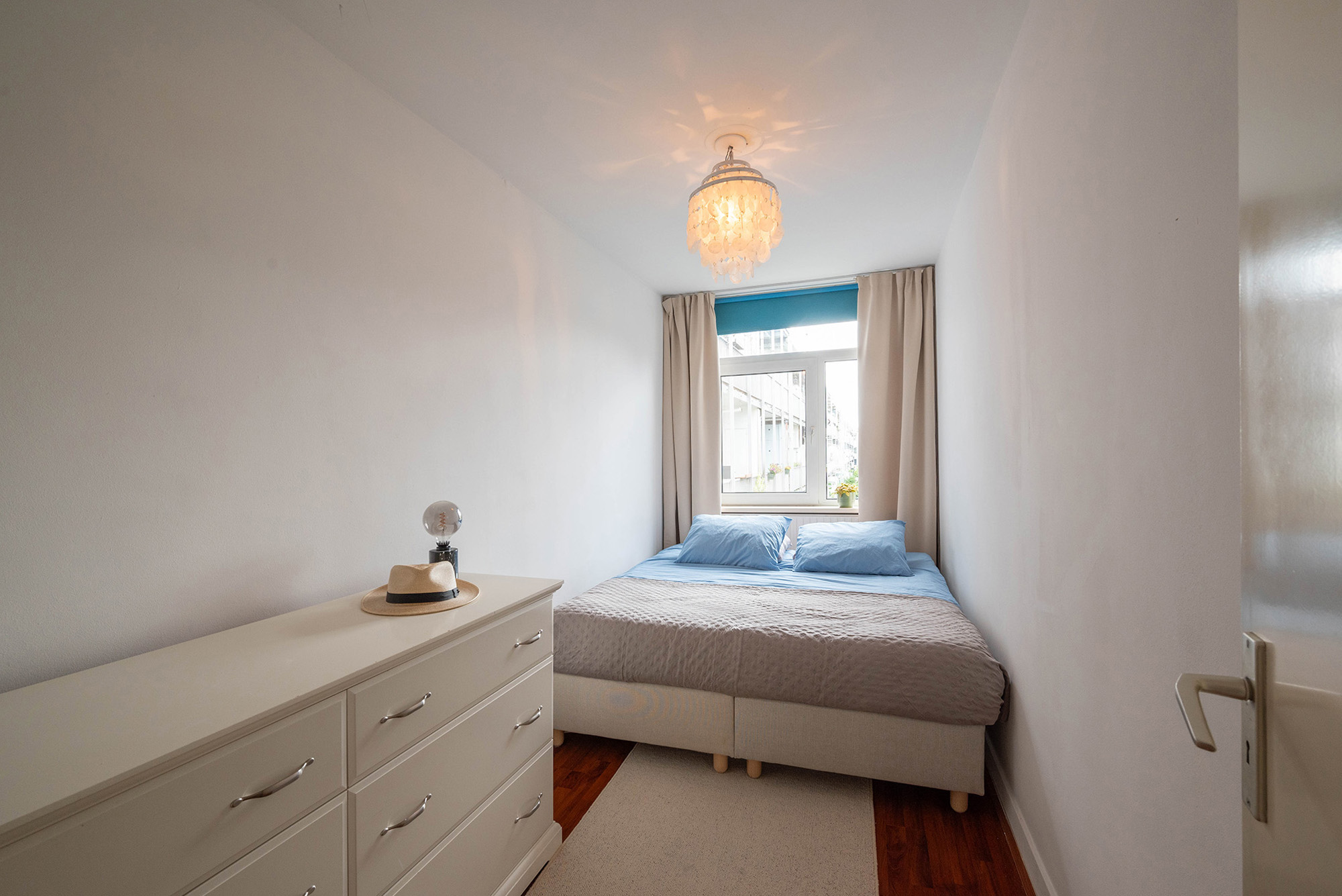 Je betreedt de woning in de hal met garderobe, ideaal voor het opbergen van je jassen en schoenen. De lichte woonkamer, voorzien van grote ramen (kozijnen nieuw geplaatst in 2020 en voorzien van HR++ glas), biedt een overvloed aan natuurlijk licht en een fijne plek om te ontspannen na een lange dag. Grenzend aan de woonkamer vind je de eerste slaapkamer. De tweede slaapkamer, te bereiken via de hal, biedt voldoende ruimte voor een kinderkamer, thuiskantoor of hobbyruimte. De separate keuken is eenvoudig maar praktisch ingericht, met alle voorzieningen die je nodig hebt. De badkamer beschikt over een douche, wastafel en toilet.