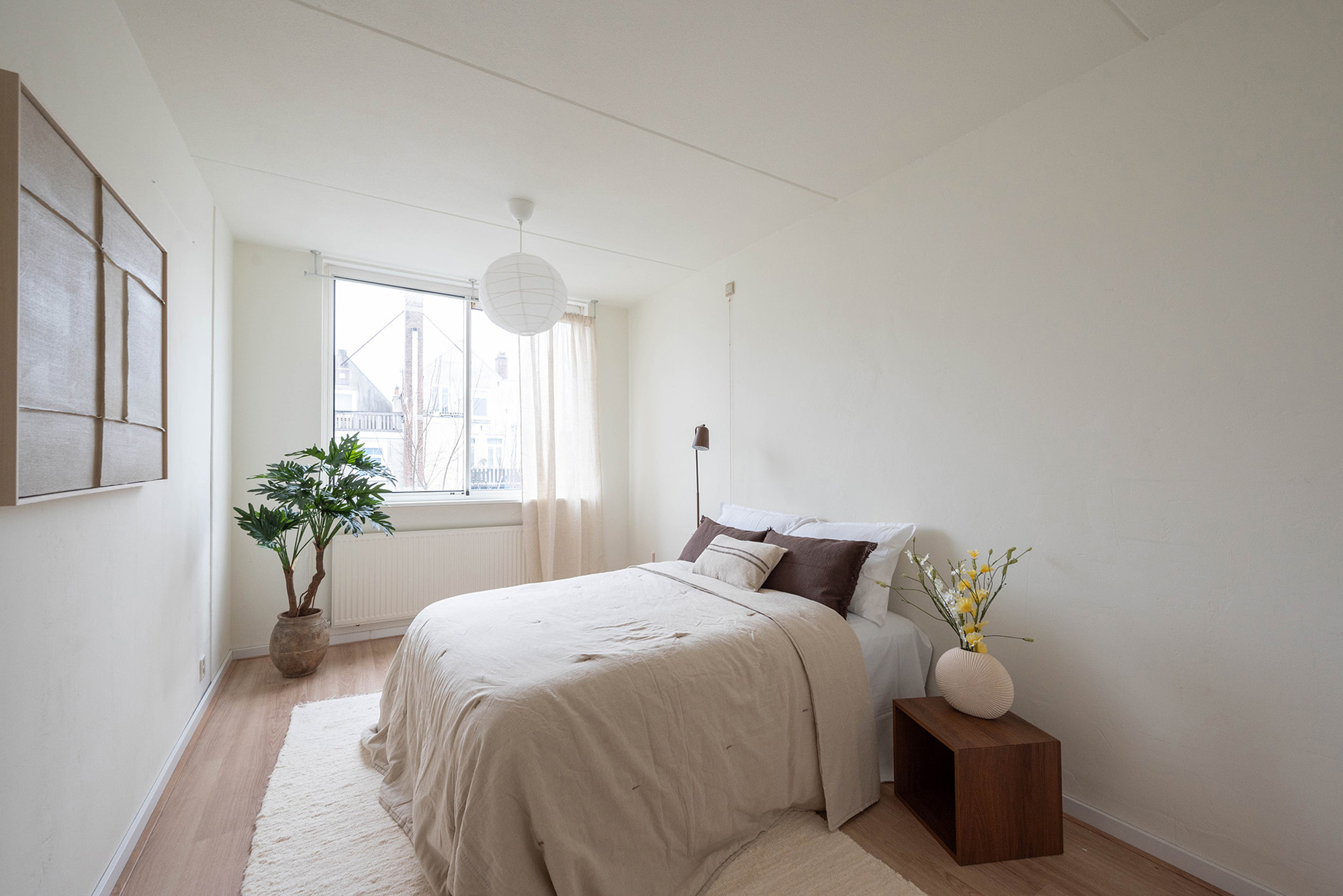 Ook de slaapkamer is aan de rustige achterzijde gelegen, wat zorgt voor een heerlijke nachtrust. De ruime badkamer in het midden van de woning is voorzien van een originele granitovloer, inloopdouche, wastafel, toilet en de aansluiting voor de wasmachine. Daarnaast beschikt het appartement over een ruime berging onder het gebouw; ideaal voor het opbergen van je fiets of seizoensspullen.