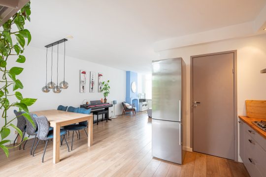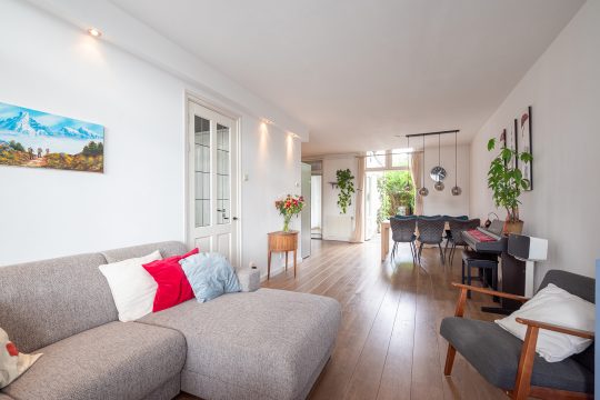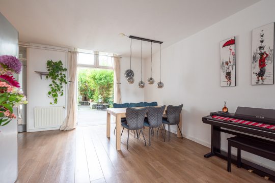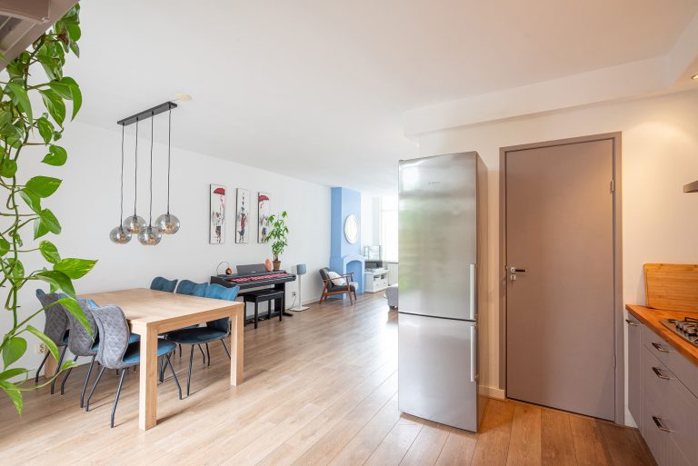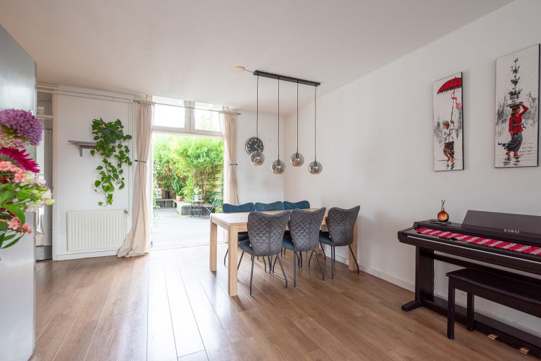 Wanneer je de voordeur opent van de Westergracht 87 ZW stap je een appartement binnen dat direct goed voelt. De woonkamer is ruim, licht en uitnodigend. Hier heb je de ruimte om te wonen zoals jij dat wilt: een grote eettafel voor lange diners, een gezellige zithoek om te ontspannen en nog meer plek over voor een werkhoek of leesstoel. De openslaande deuren brengen je naar wat misschien wel het grootste cadeau van dit huis is: een tuin die zeer royaal is voor stadse begrippen.