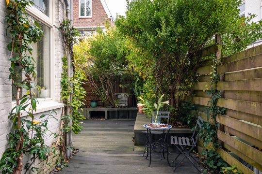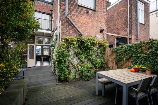 Met meer dan dertig vierkante meter is dit geen buitenruimte die je er ‘bij krijgt’, maar echt een verlengstuk van je woning. Je ziet jezelf hier al zitten: ’s ochtends met een kop koffie in de eerste zonnestralen, ’s middags een lunch in de buitenlucht en ’s avonds vrienden over de vloer voor een gezellig diner. De tuin biedt ruimte voor meerdere zitjes en is lekker groen – jouw eigen stukje stadsoase. En dat terwijl je toch midden in Haarlem woont.