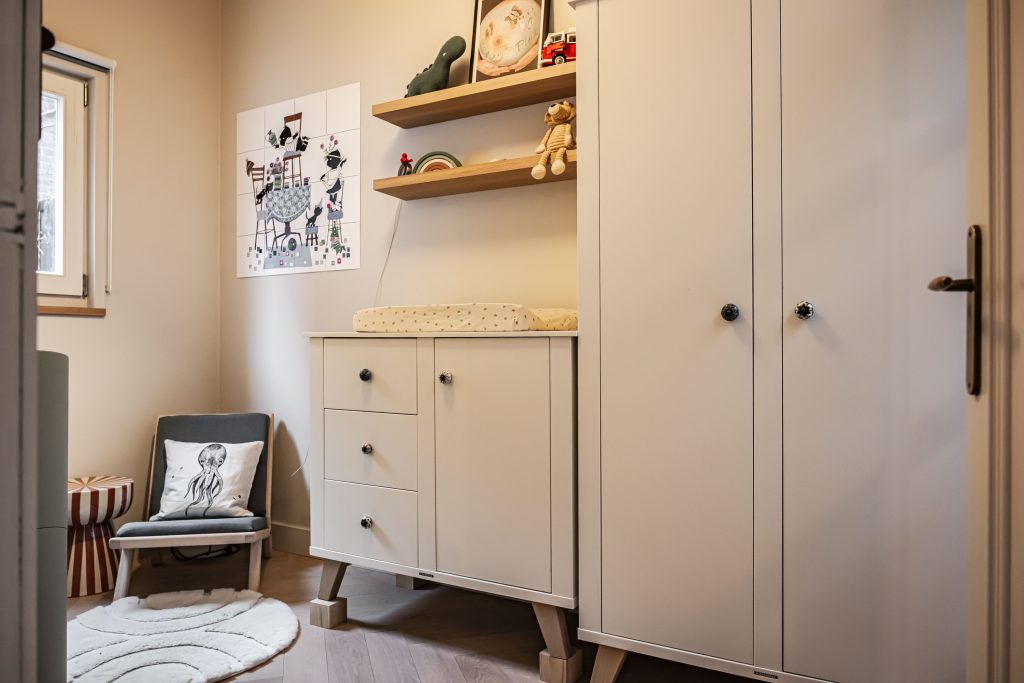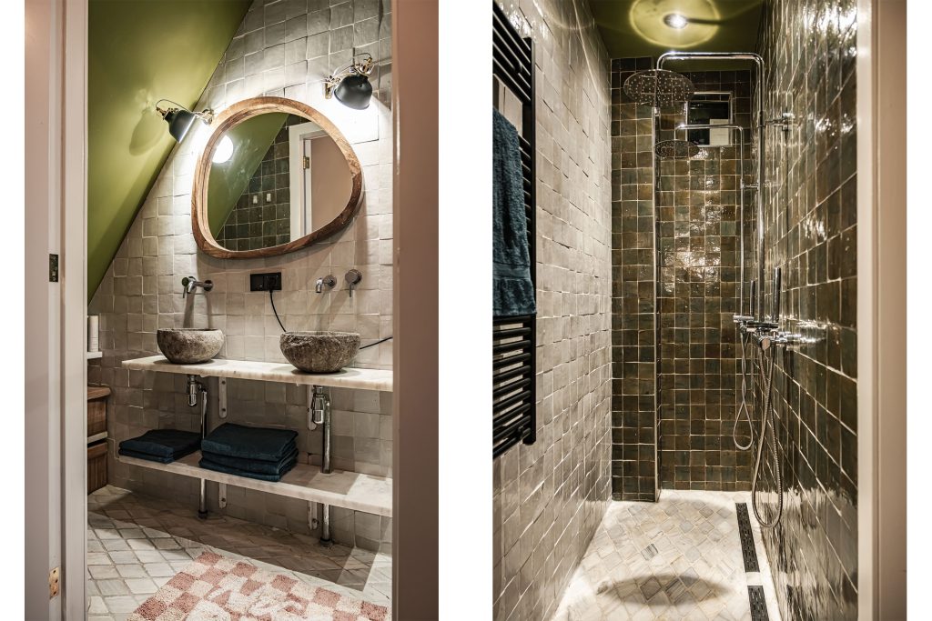 Vanaf het moment dat je de woning binnenstapt voel je het al: dit is geen standaard huis. Alles klopt en is met aandacht gedaan. De badkamer is modern en stijlvol, met twee elegante waskommen en een royale inloopdouche met dubbele douchekop. Ook aan praktische zaken is gedacht, verderop in de gang vind je een ruime bergkast voor de cv-ketel (2021) en de wasmachine-opstelling, netjes uit het zicht achter een fraaie paneeldeur.