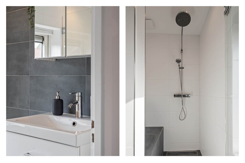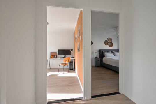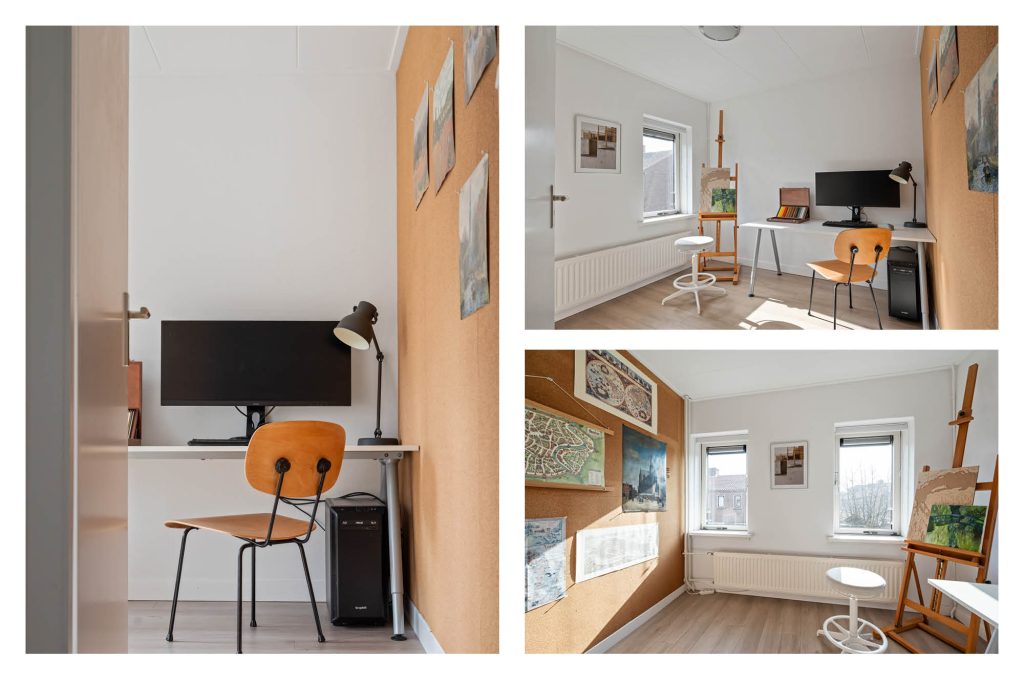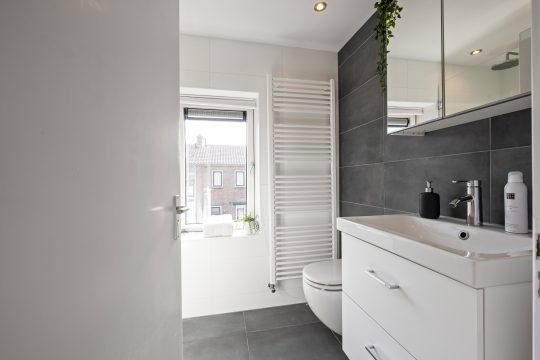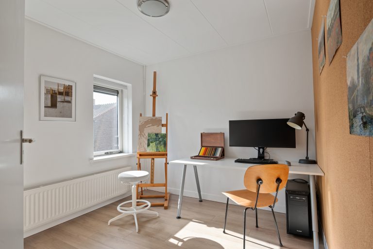Op de eerste verdieping vind je twee zeer ruime slaapkamers en een kleinere slaap/werkkamer. Deze is momenteel in gebruik als inloopkast. De badkamer is modern en verzorgd, met een fijne inloopdouche, wastafelmeubel en een tweede toilet. Alles is hier gericht op gemak en comfort.