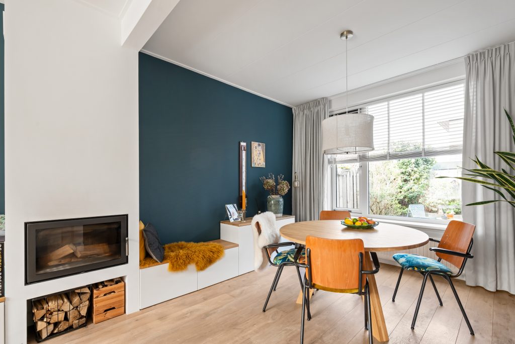 * Lichte doorzon woonkamer met houtkachel