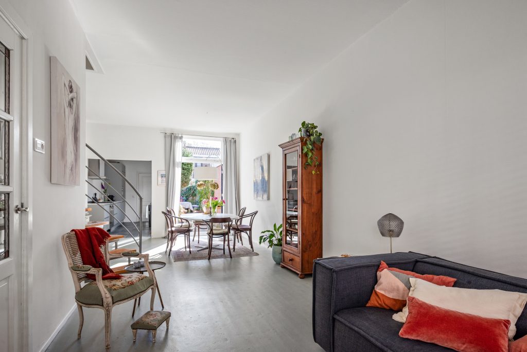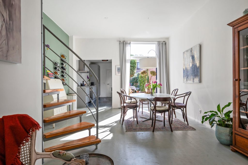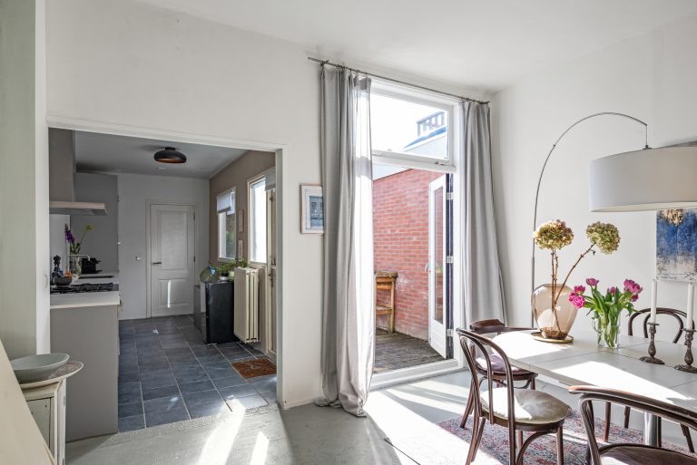 In de Generaal de la Reijstraat vind je een woning waar karakter en comfort moeiteloos samenkomen. Zodra je binnenstapt, voel je de sfeer van vroeger in de authentieke details en het glas-in-lood, terwijl het wooncomfort helemaal van nu is. De woonkamer heeft een stoere betonnen vloer met vloerverwarming, waardoor het hier het hele jaar door aangenaam aanvoelt en je een rustige, moderne basis hebt voor jouw eigen stijl.