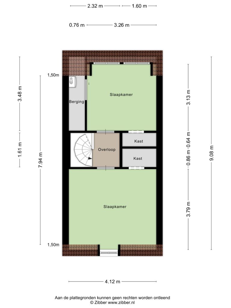 * Achterkamer met dakkapel en vaste kast