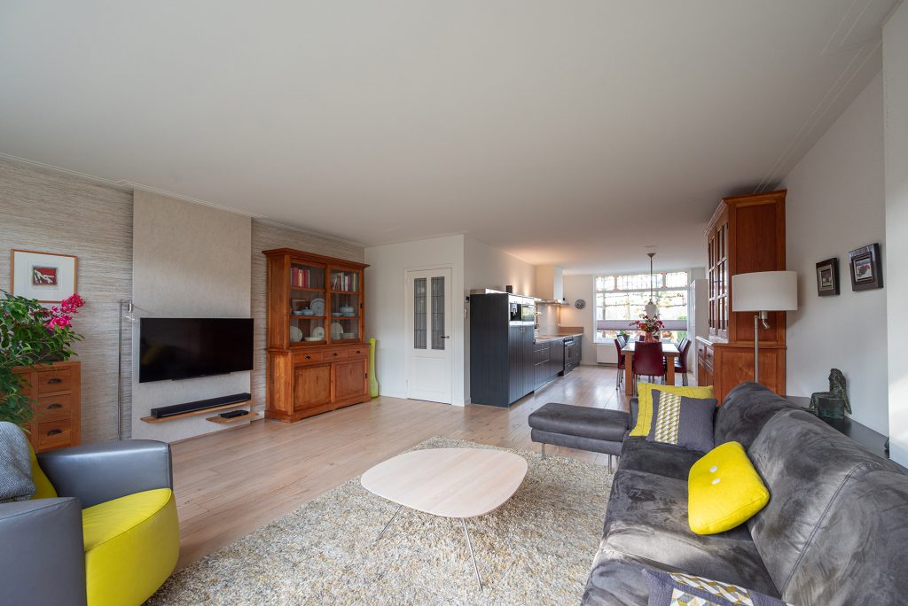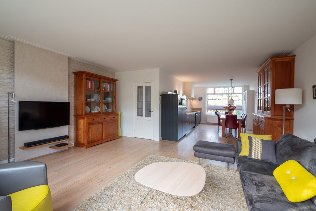 Zodra je de deur opent, voel je het meteen: dit is een huis waar ruimte, licht en stijl samenkomen. De uitgebouwde woonkamer ademt rust en comfort, met openslaande deuren die ervoor zorgen dat de zonnige achtertuin een verlengstuk van je woonkamer wordt. De fraaie eikenhouten vloer geeft de ruimte een warme en uitnodigende sfeer.