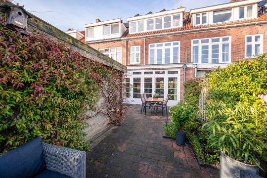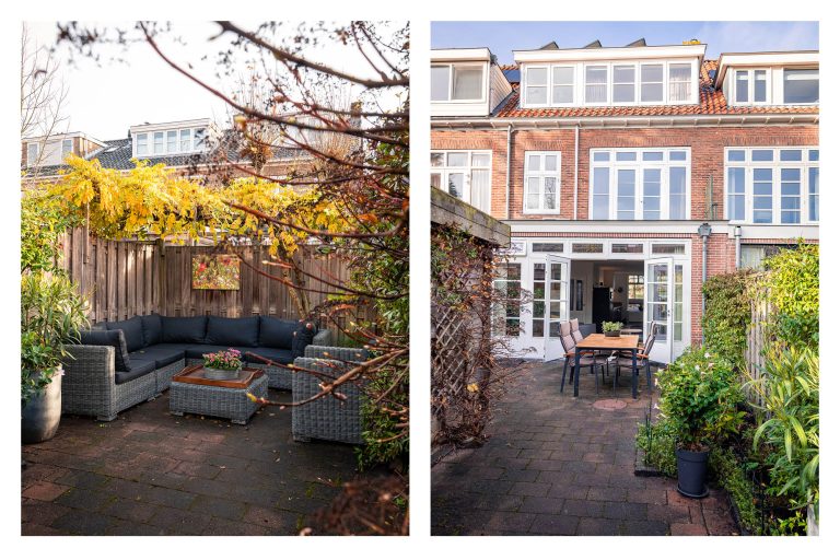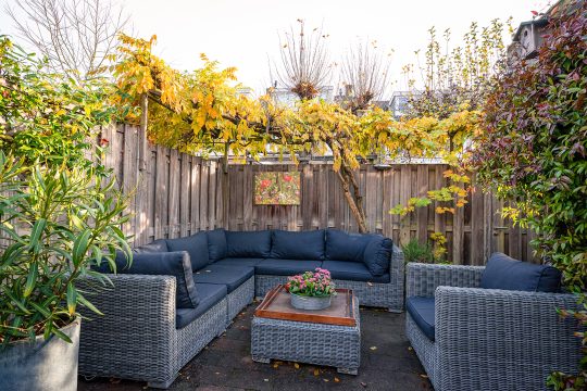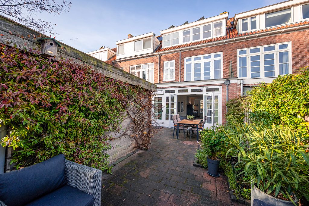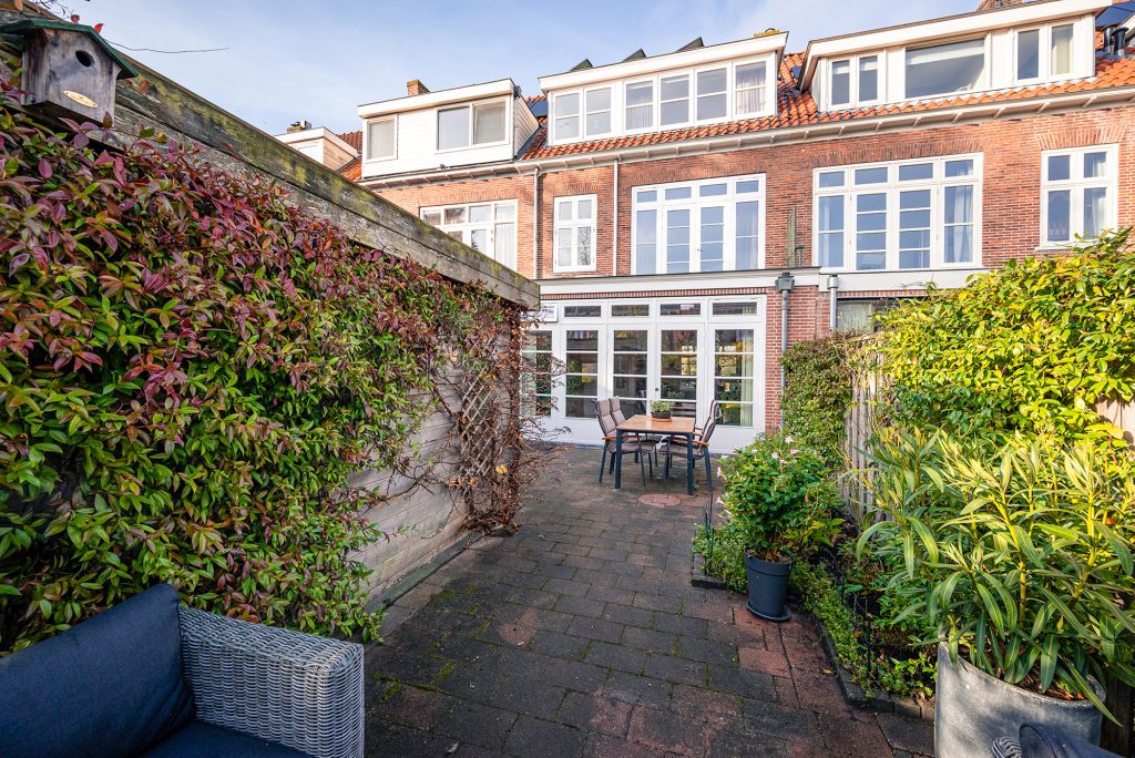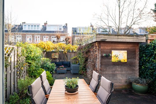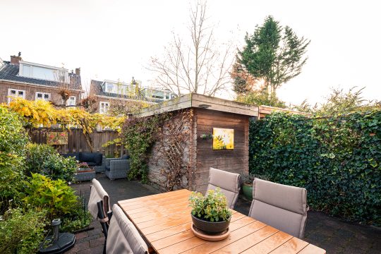 De tuin is ruim negen meter diep en biedt op ieder moment van de dag wel een plekje in de zon. Zowel direct achter het huis als geheel achterin staat een heerlijk terras tot je beschikking. Ook de voortuin op het westen is een fijne plek om te genieten van de laatste zonnestralen.