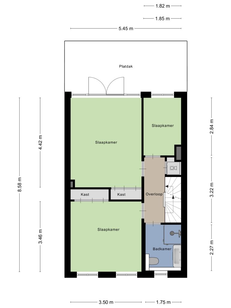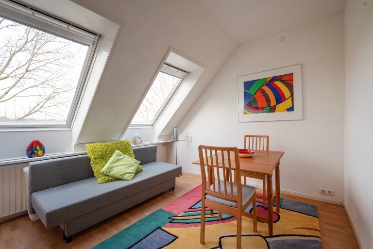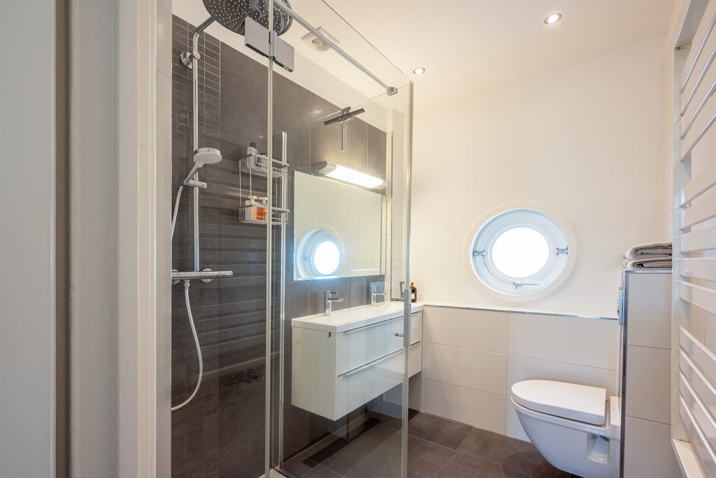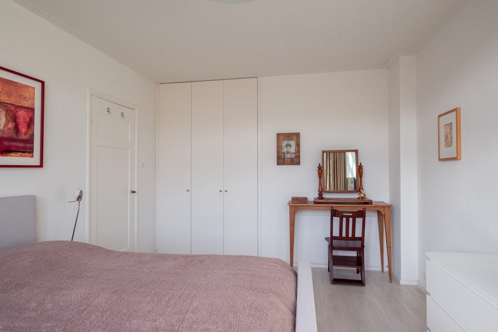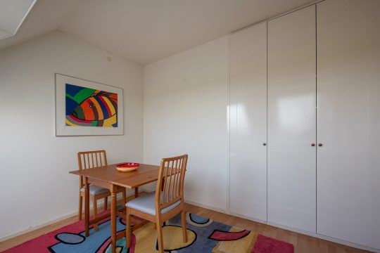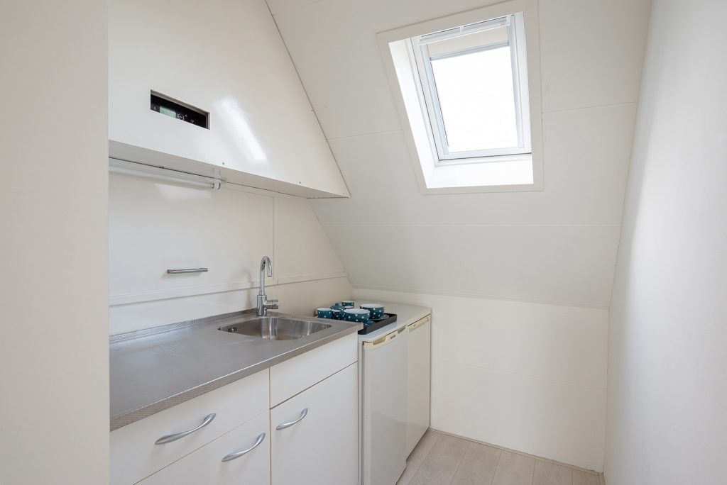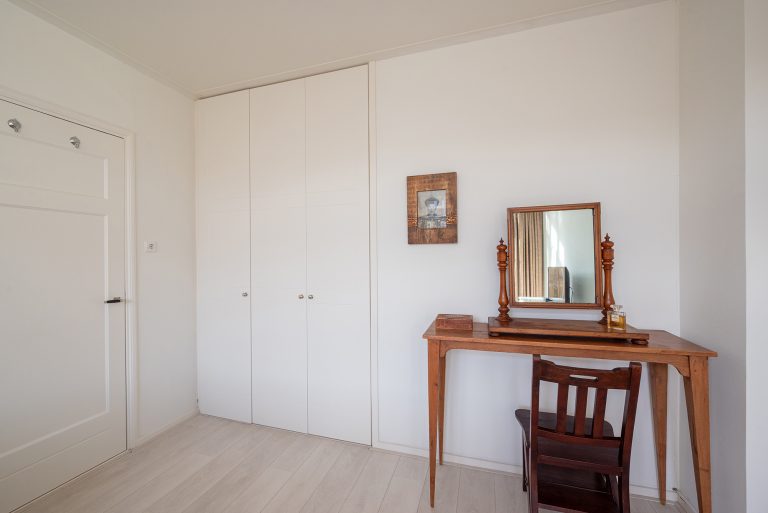 De tweede verdieping is bijna een appartement op zich, perfect voor gasten of opgroeiende kinderen die wat meer privacy zoeken. Er zijn twee riante slaapkamers en er is een tweede badkamer met ligbad, douche, wastafel en toilet, en op de overloop vind je een compacte kitchenette. Een ideale combinatie van zelfstandigheid en comfort, met verrassend veel ruimte.
