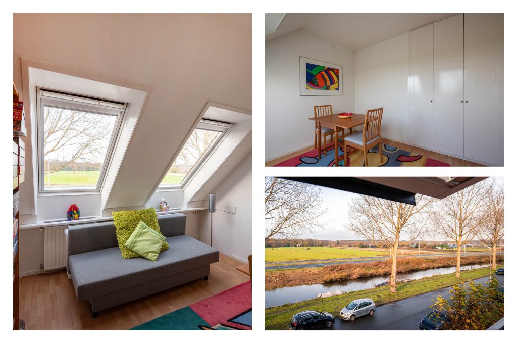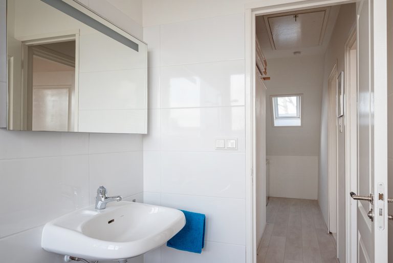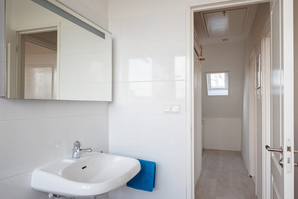 Op de eerste verdieping wachten twee ruime slaapkamers en een kleinere kamer, perfect als kleed- of kinderkamer. De beide grote slaapkamers zijn voorzien van vaste kasten. In de slaapkamer aan de voorzijde geniet je van het vrije uitzicht over de weilanden achter de randweg; adembenemend mooi. De badkamer is modern en praktisch ingericht en voorzien van een inloopdouche, dubbele wastafel en een toilet.