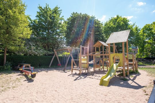 * Grote speeltuin en openluchtzwembad op loopafstand