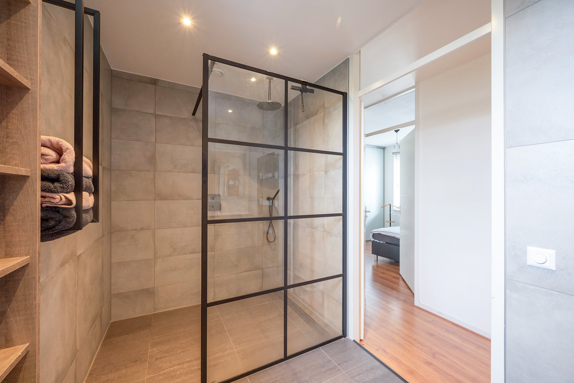 Via de trap in de woonkamer bereik je de eerste etage. De grote overloop biedt toegang tot drie ruime slaapkamers: de ouderslaapkamer (6,02 x 4,27 m) met twee kantelramen en twee dakkapellen, slaapkamer twee (4,51 x 2,78 m) met een vaste kastenwand, en slaapkamer drie (3,90 x 2,78 m). Tevens is er een praktische wasruimte met cv-opstelling (2024) en centrale ventilatie-installatie. De ruime badkamer is zo goed als nieuw en is voorzien van twee wastafels, een grote inloopdouche met thermostatische kraan en een plavuizen vloer. Ook bevind zich op deze verdieping een separate modern toilet.