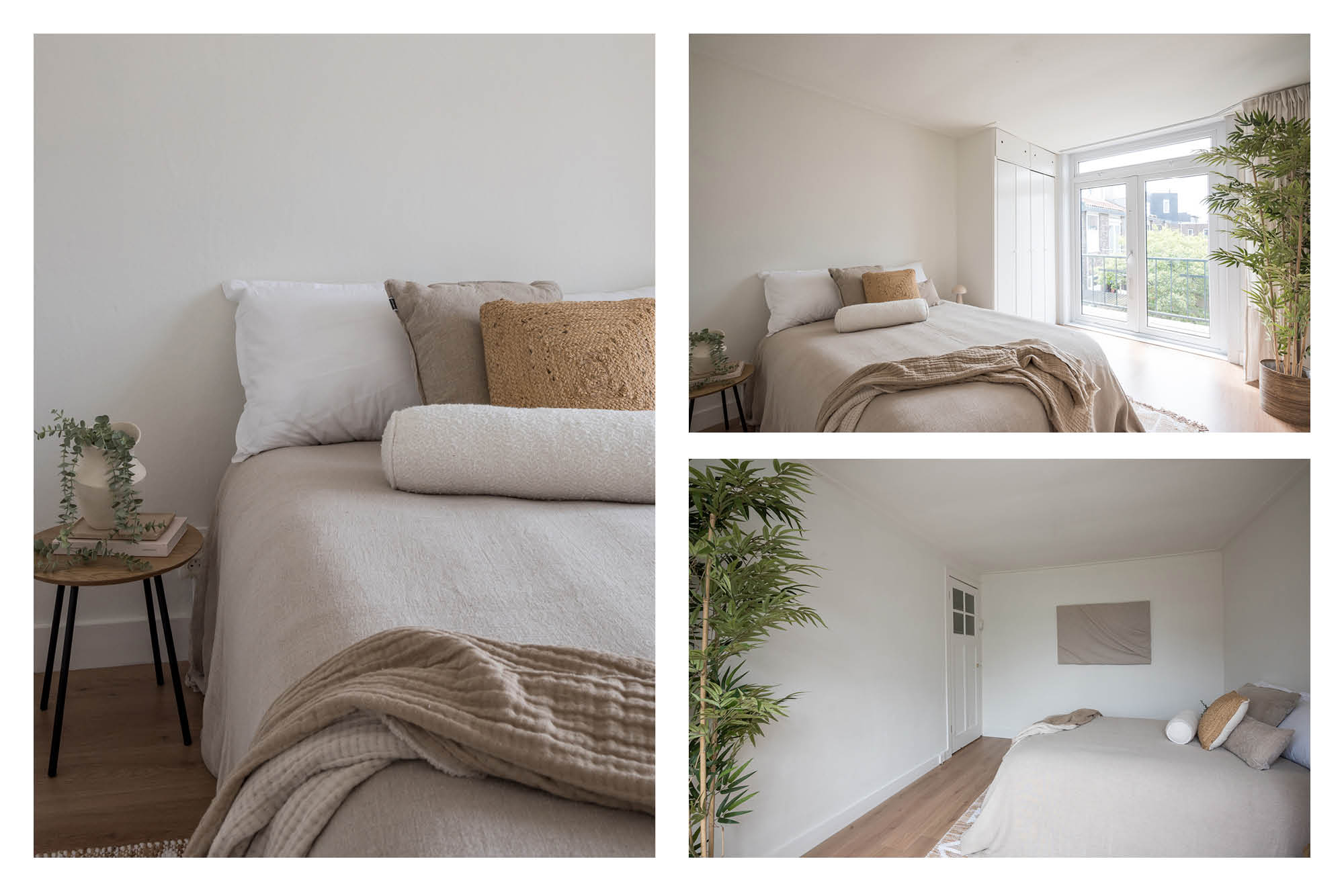 De tweede verdieping verrast met nóg een ruime slaapkamer, voorzien van een eigen wastafel en een deur naar een tweede balkon. De voorzolder biedt plek voor de wasmachine en droger en extra bergruimte – altijd handig.