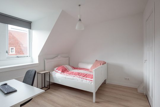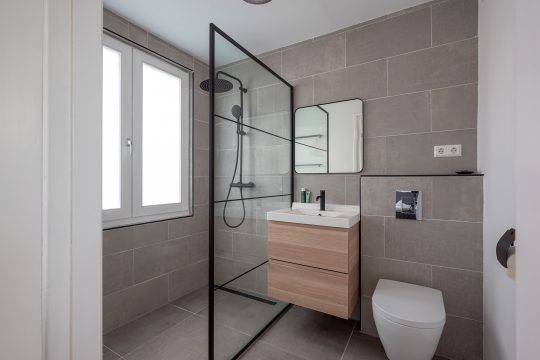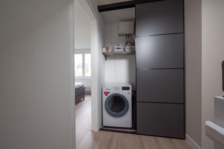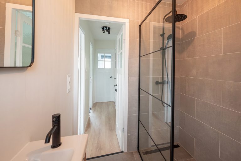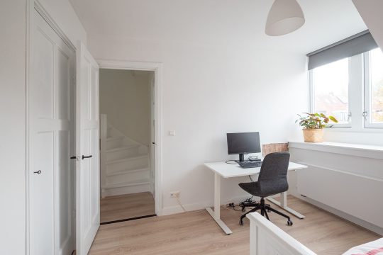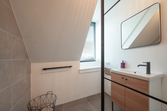 Boven is het net zo verzorgd. Twee ruime slaapkamers, een fijne werk- of kinderkamer en een moderne badkamer met inloopdouche en wastafelmeubel. Op de overloop een apart toilet, wel zo praktisch. Op de tweede verdieping vind je nog een ruime slaapkamer met een eigen badkamer met inloopdouche, wastafelmeubel en toilet. Op de overloop is de wasmachine mooi weggewerkt achter een kastenwand.